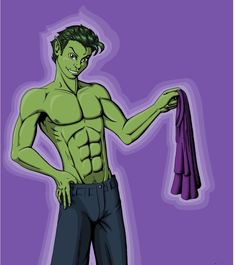 How Adults See It... The only team member who does not seem the least bit embarrassed to be walking around with no clothes on is Beast Boy. This makes sense since he regularly operates without his clothes while in animal form.